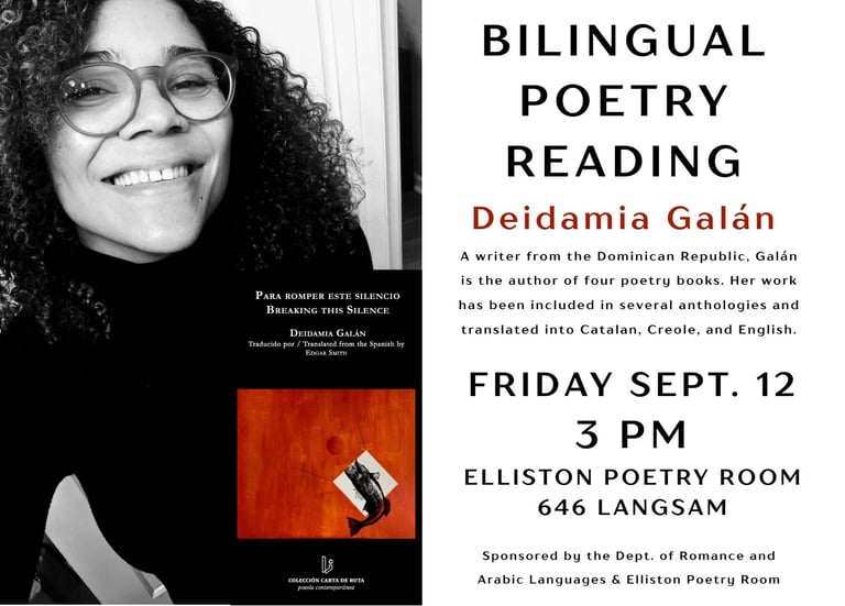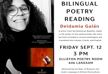 Lectura bilingüe en el prestigioso Elliston Poetry Room de la Universidad de Cincinnati. Este evento es organizado por el departamento de lenguas romances y arábicas.